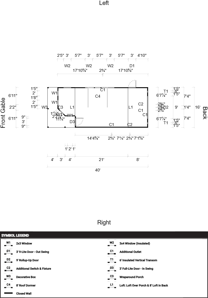 3' 9-Lite Door – Out Swing, Hinges Left, 3' Full-Lite Door – In Swing, Hinges Left, 9' Rollup-Up Door