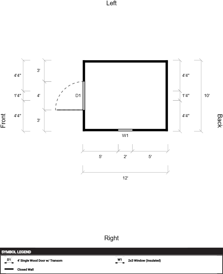 | Doors | 4' Single Wood Door w/ Transom, Hinges Right |