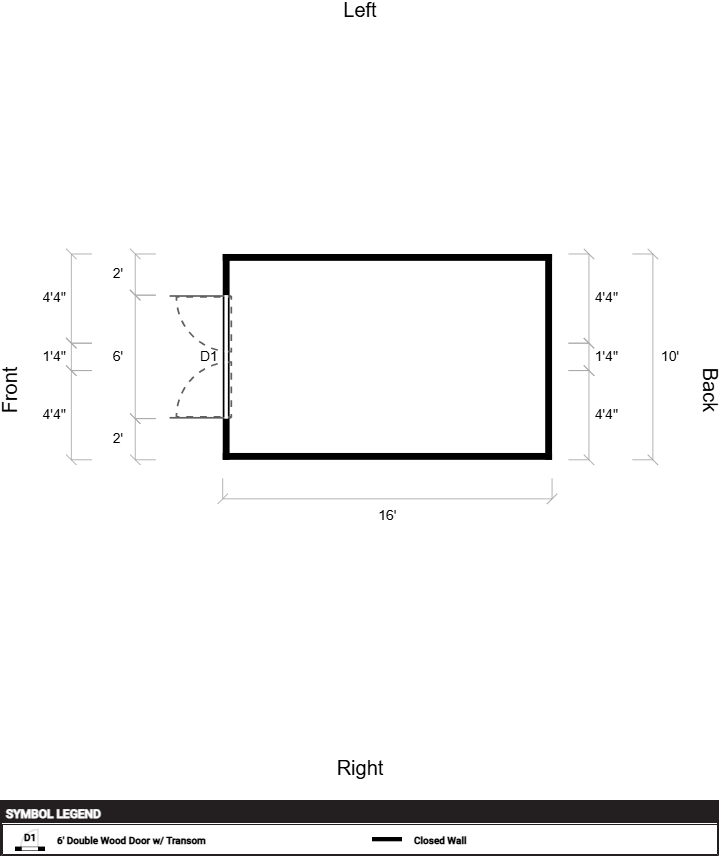 | Doors | 6' Double Wood Door w/ Transom |