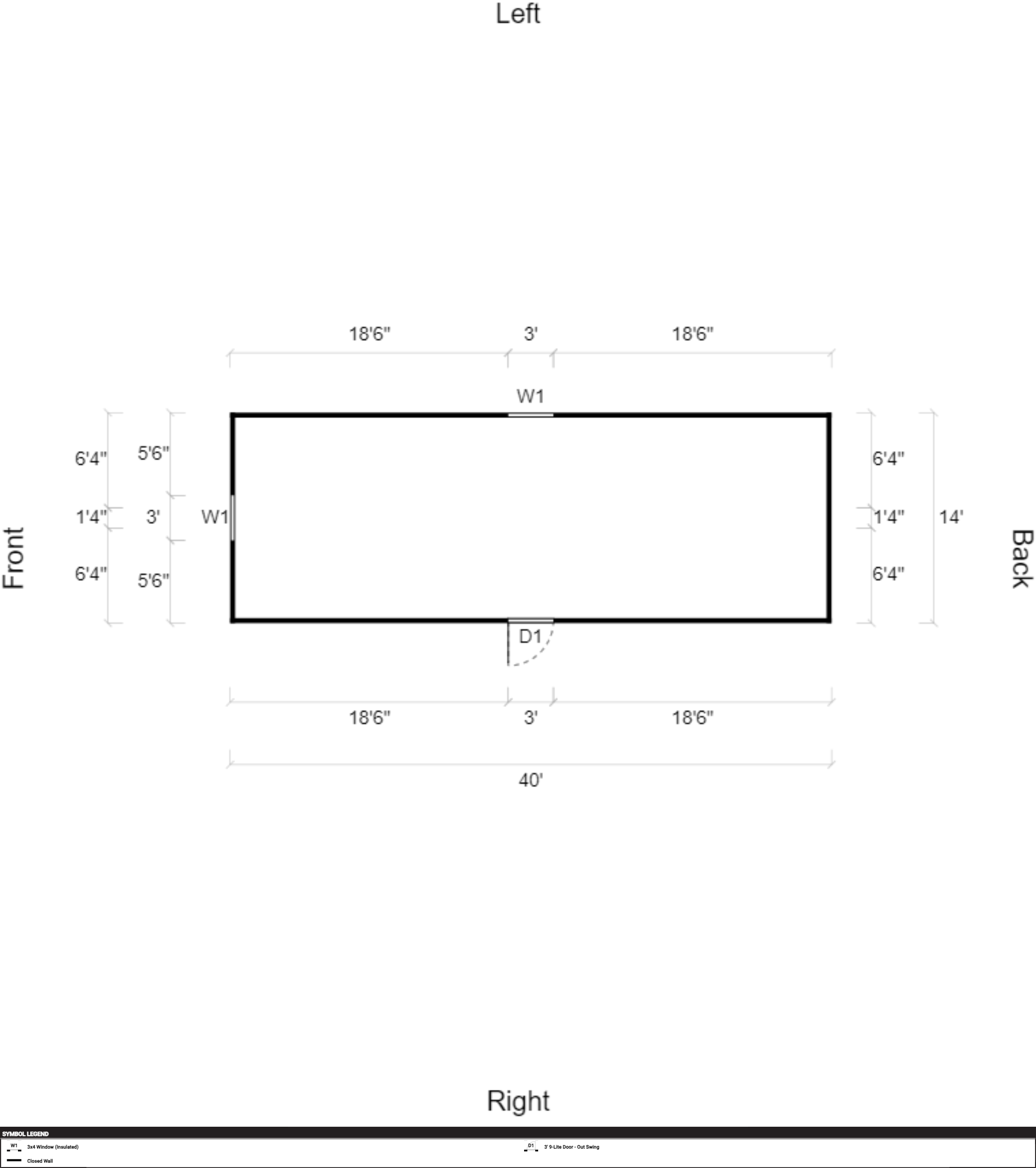 | Doors | 3' 9-Lite Door – Out Swing, Hinges Left |