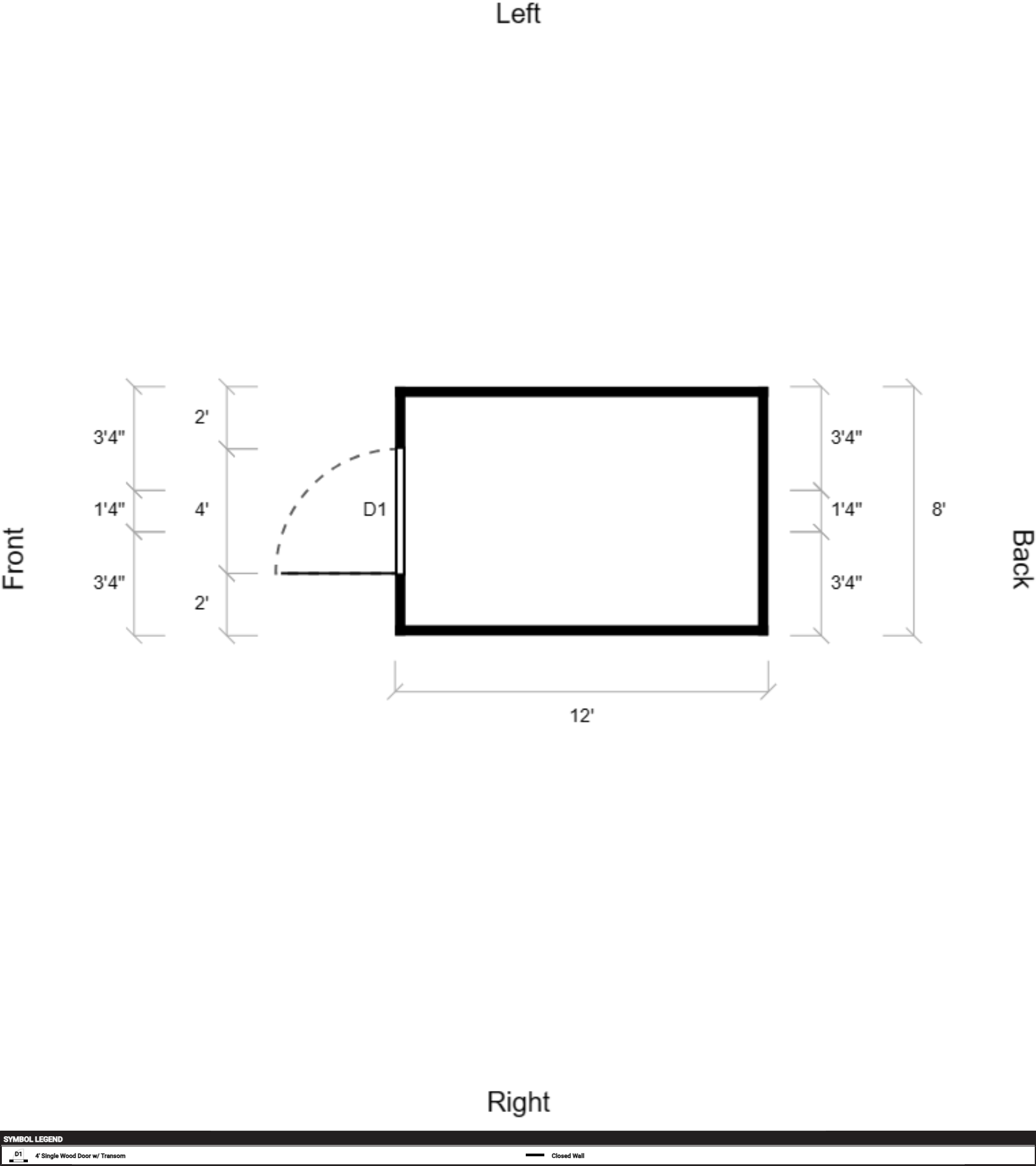 | Doors | 4' Single Wood Door w/ Transom, Hinges Right |