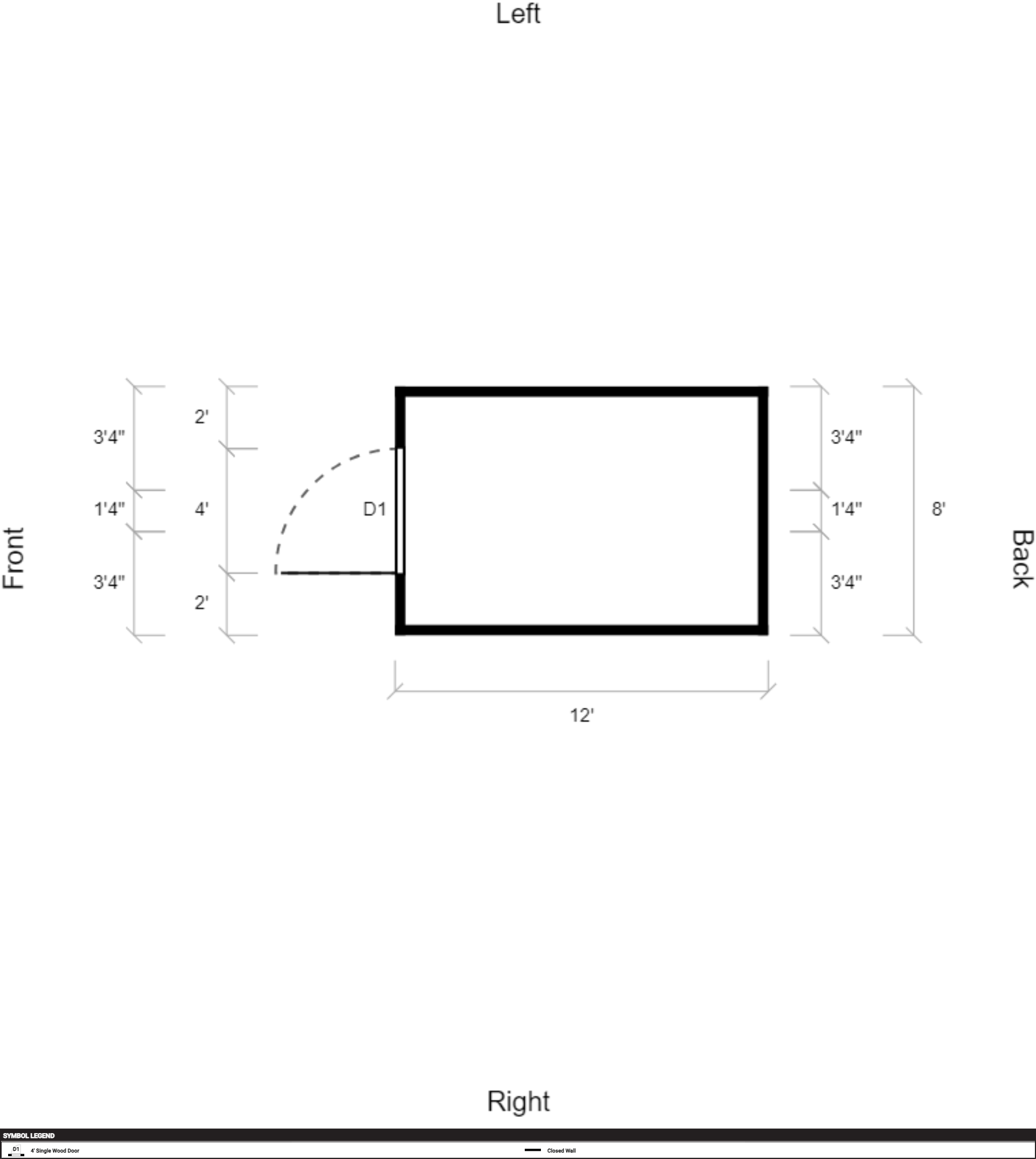 | Doors | 4' Single Wood Door, Hinges Right |