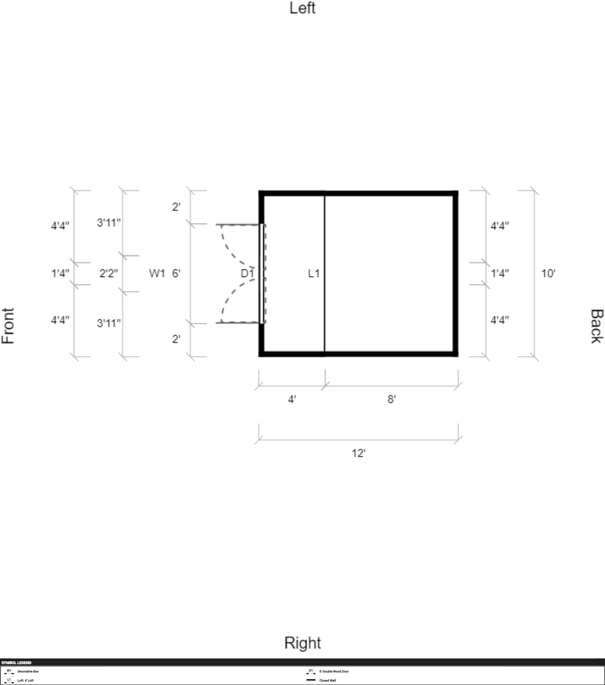| Doors | 6' Double Wood Door |