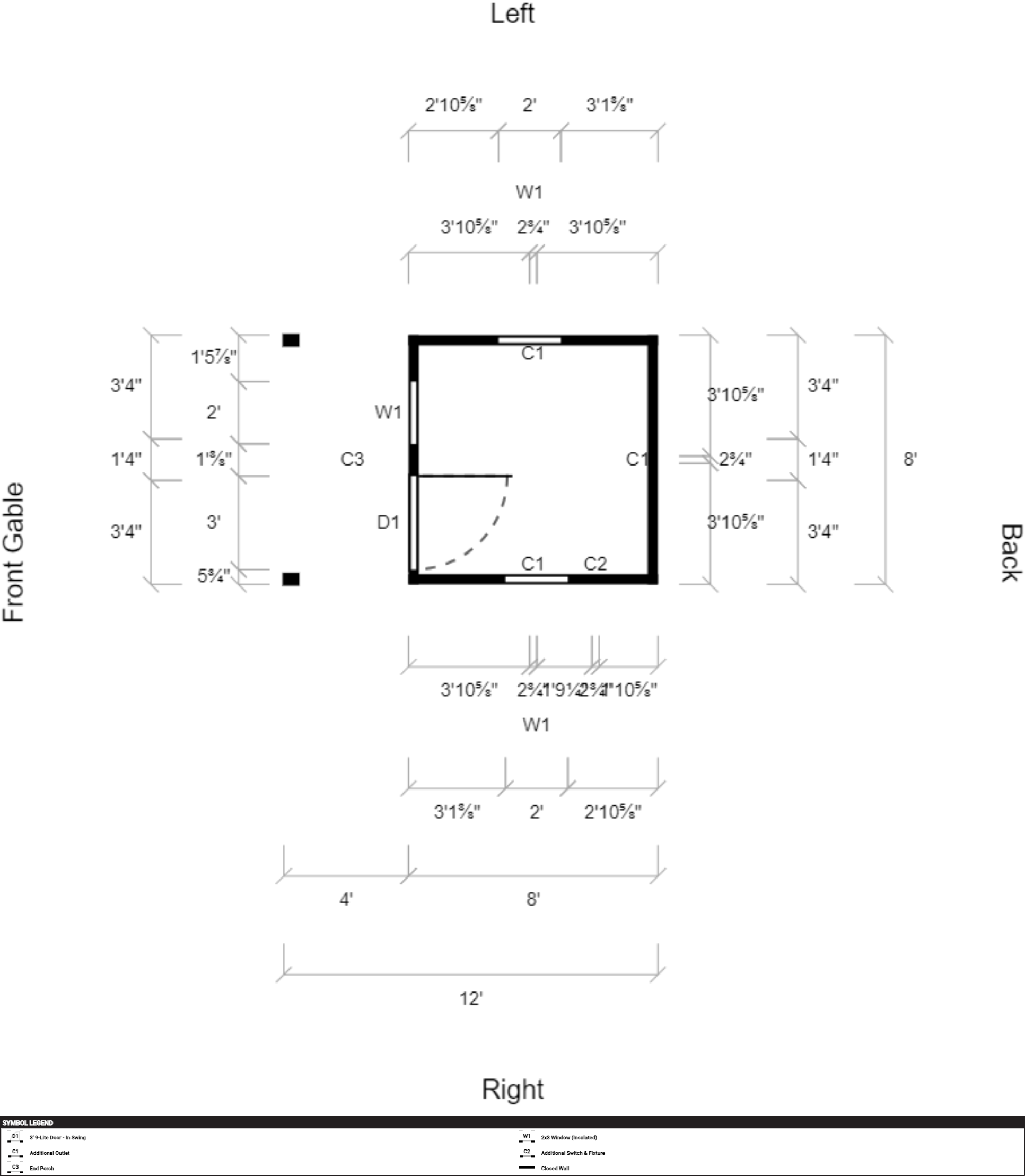 | Doors | 3' 9-Lite Door – In Swing, Hinges Left |