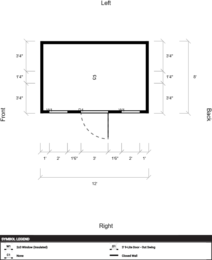 | Doors | 3' 9-Lite Door – Out Swing, Hinges Right |