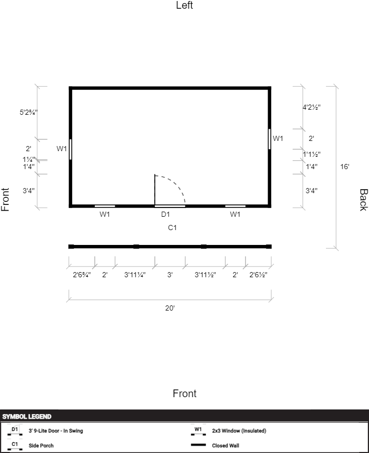 | Doors | 3' 9-Lite Door – In Swing, Hinges Left |