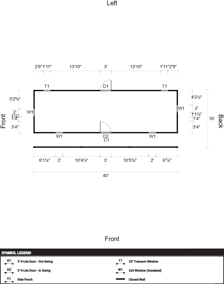 | Doors | 3' 9-Lite Door – Out Swing, Hinges Left, 3' 9-Lite Door – In Swing, Hinges Left |