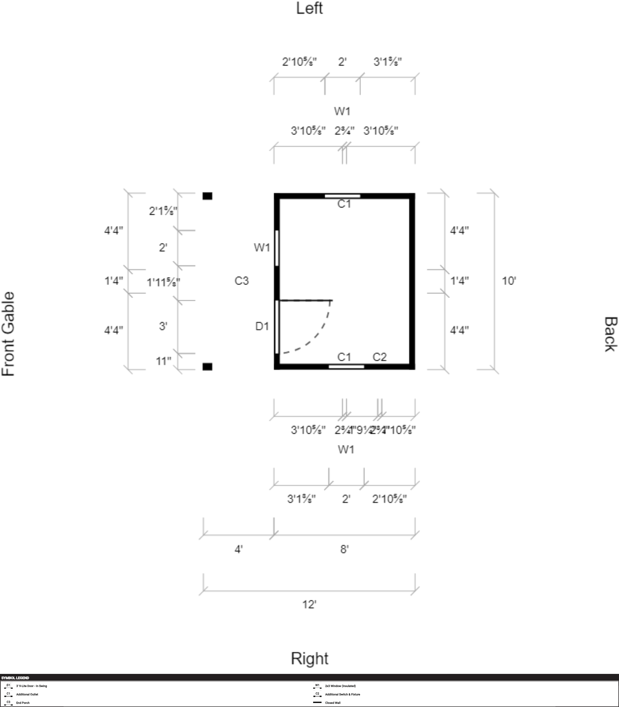 | Doors | 3' 9-Lite Door – In Swing, Hinges Left |