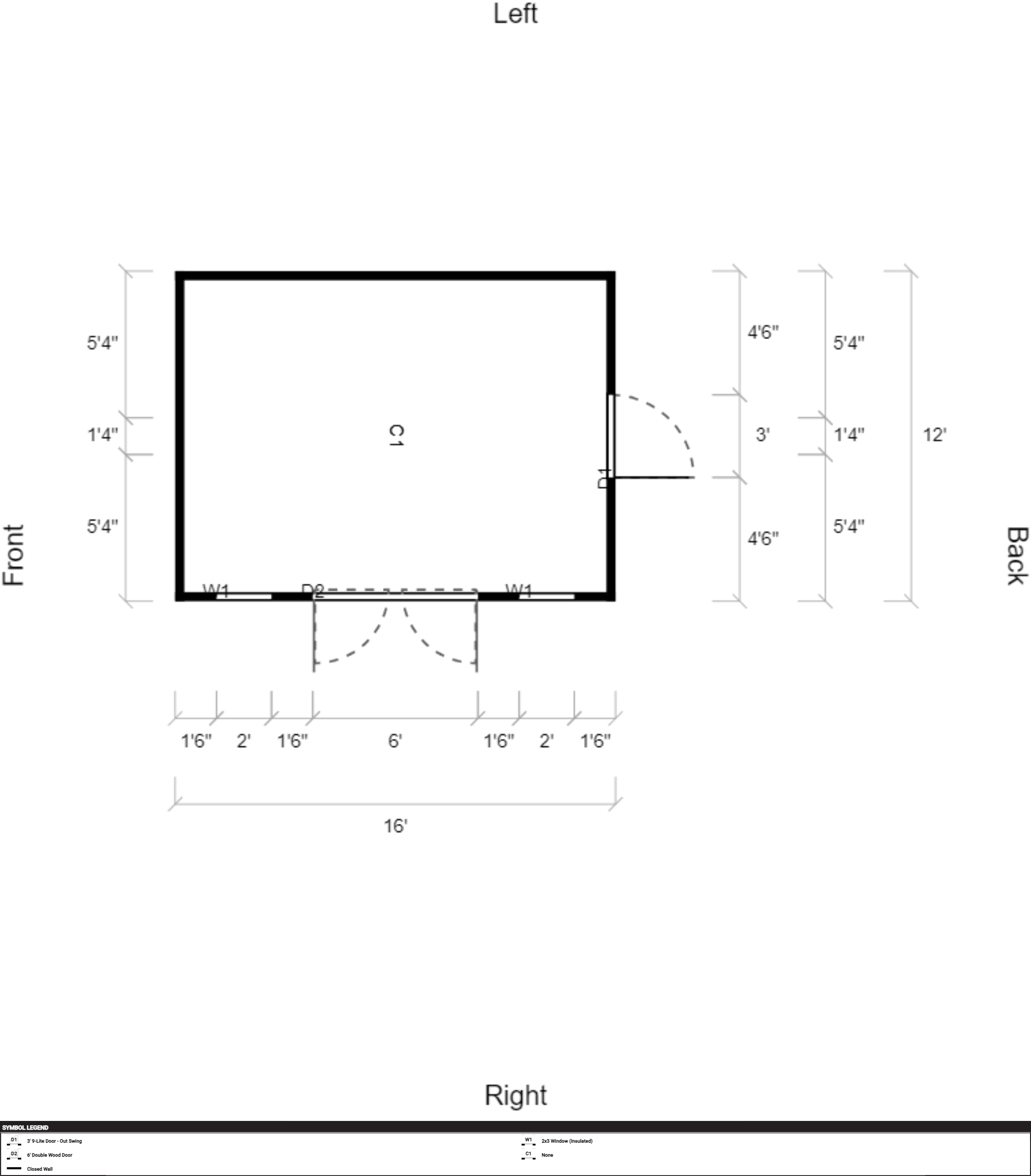 | Doors | 3' 9-Lite Door – Out Swing, Hinges Left, 6' Double Wood Door |
