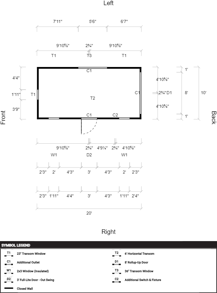 | Windows | 23" Transom Window, 36" Transom Window, 6' Horizontal Transom, Color: White, 2×3 Window (Insulated) |