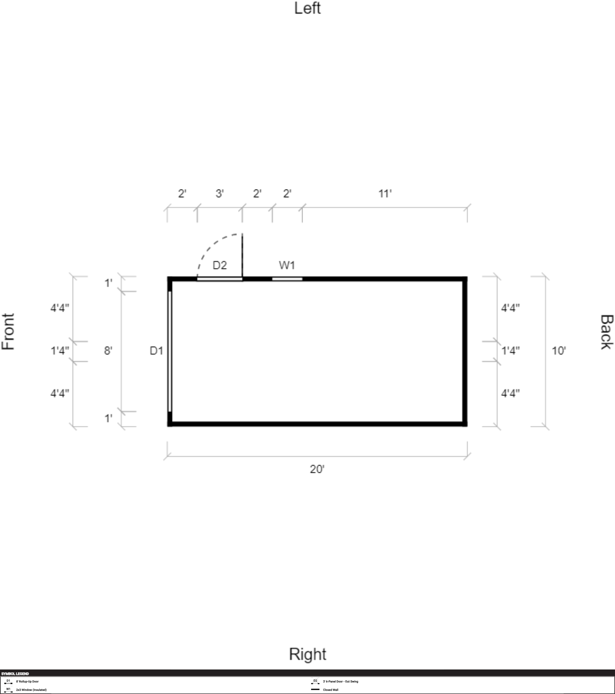 3' 6-Panel Door – Out Swing, Hinges Left, 8' Rollup-Up Door